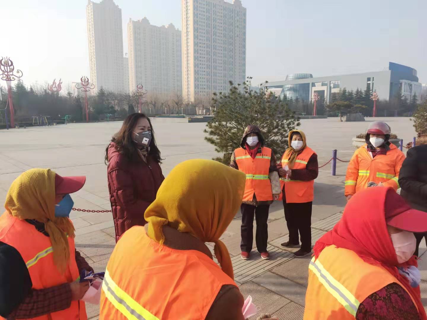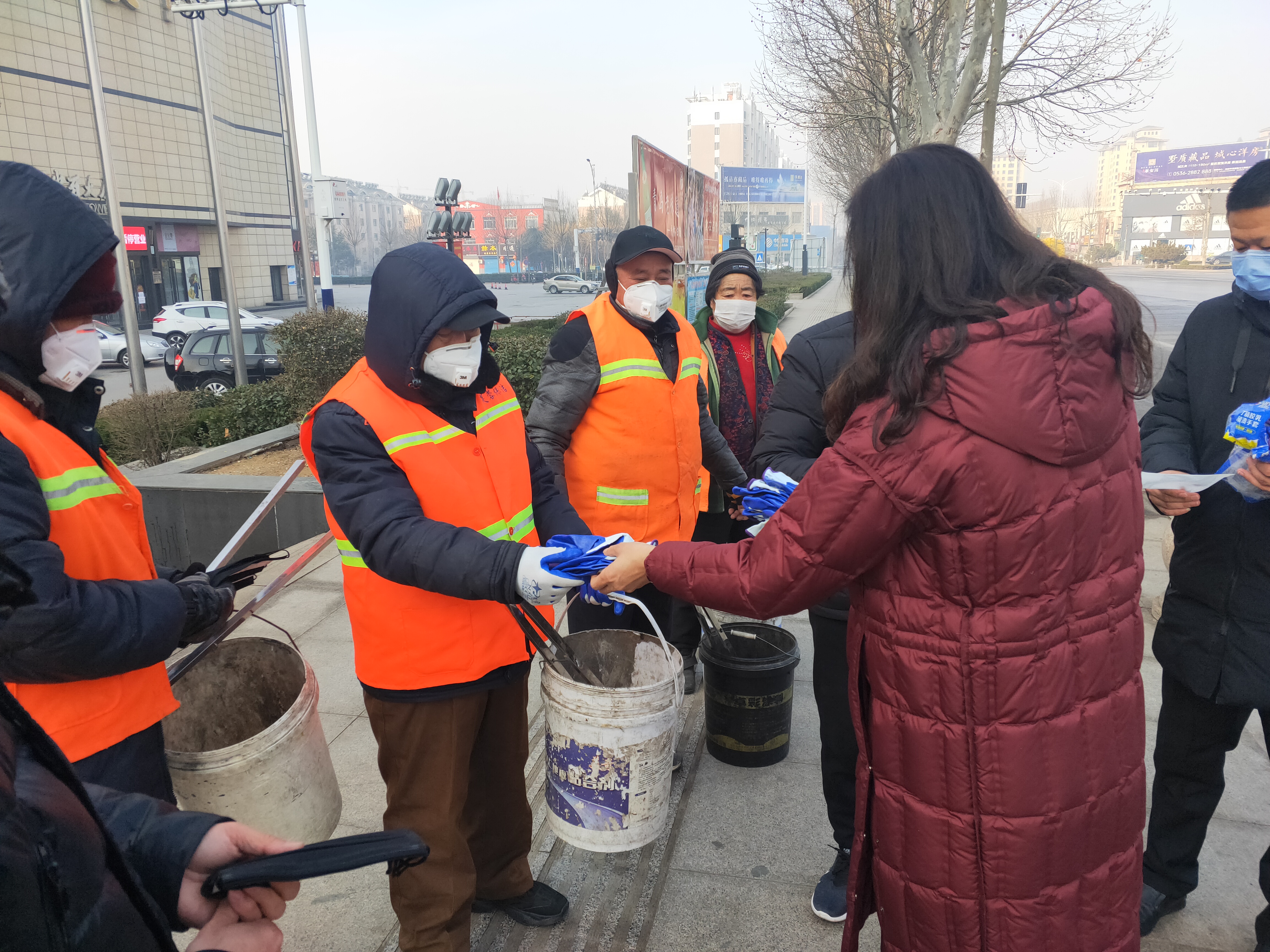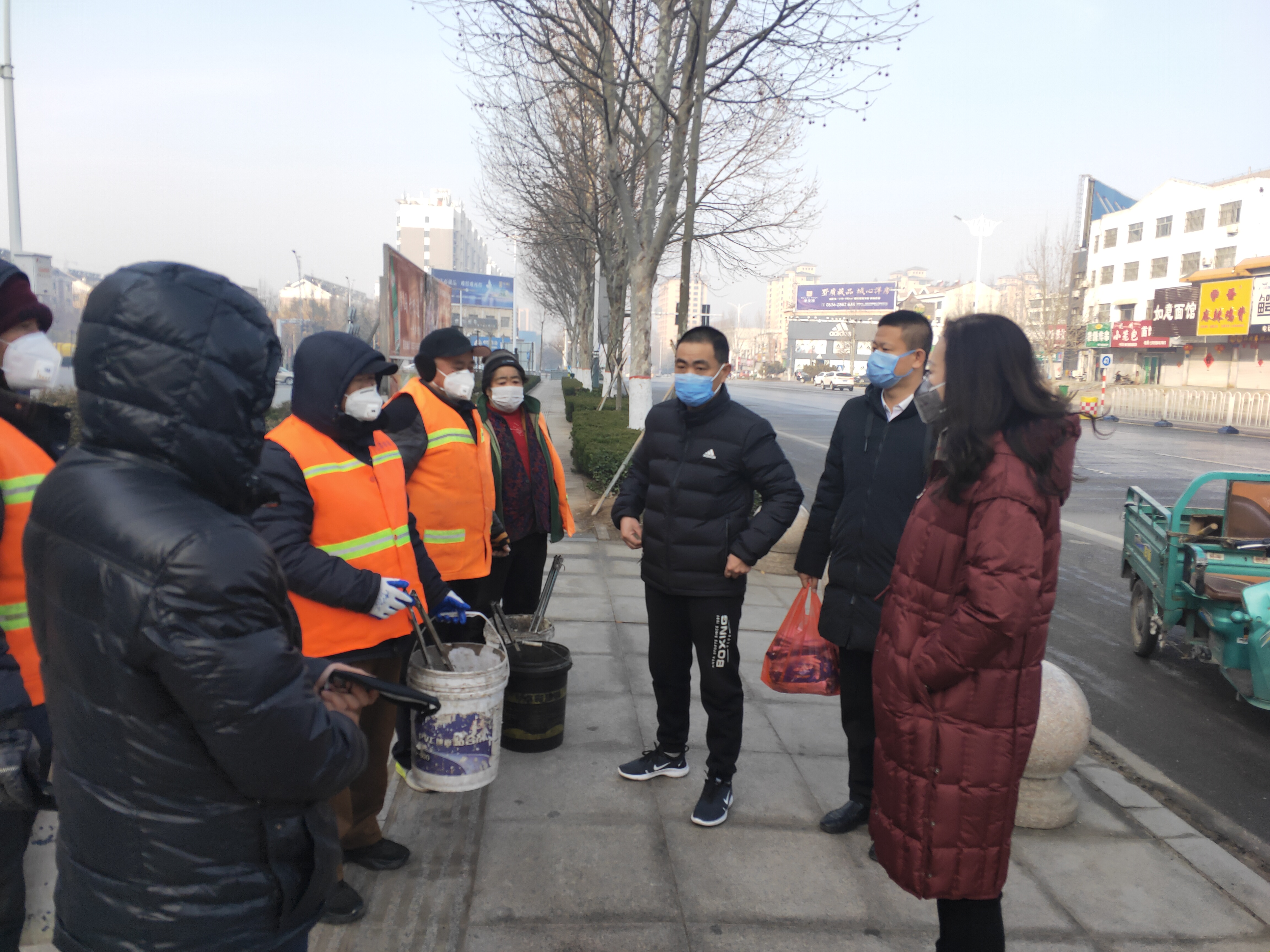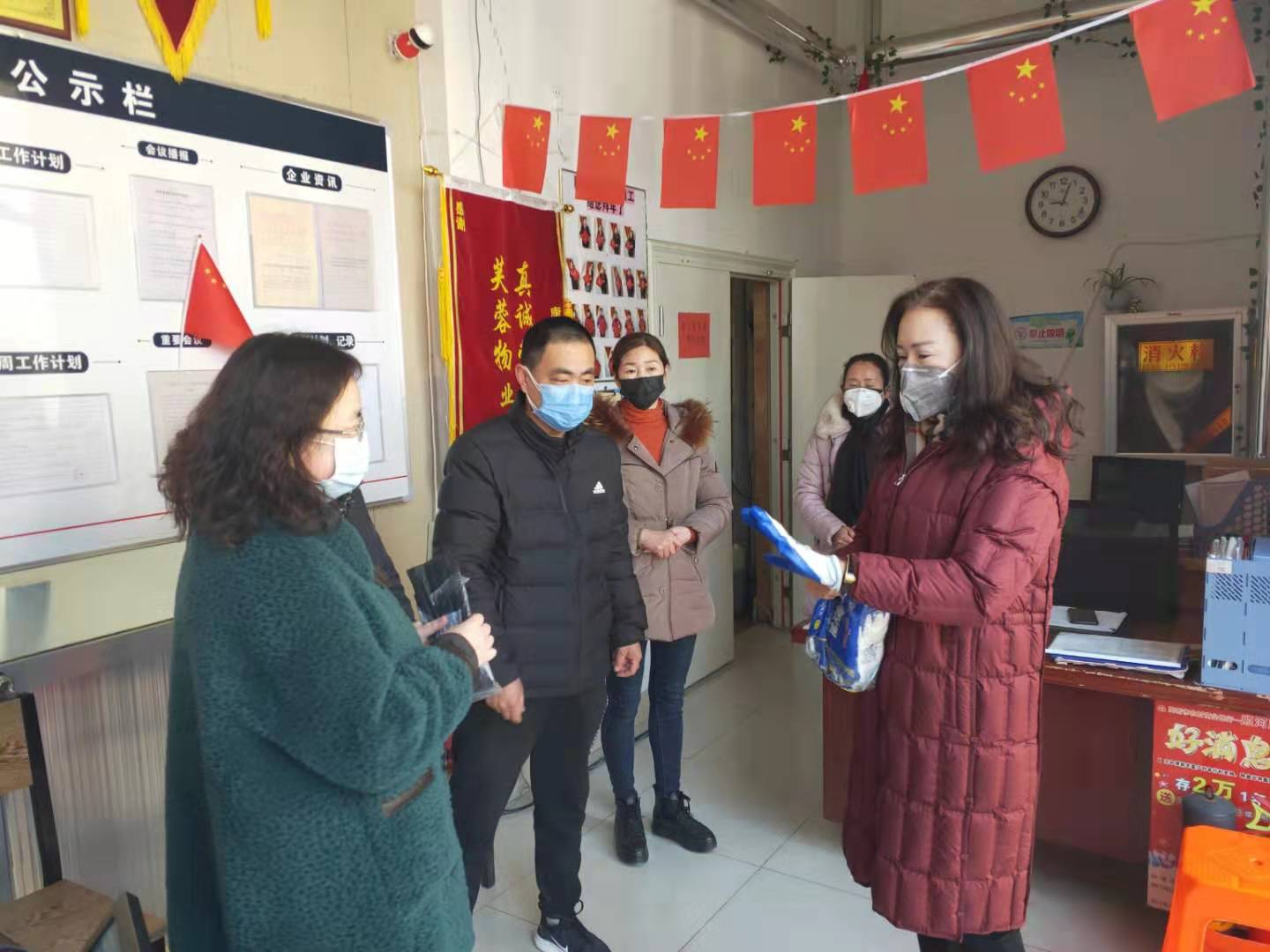 疫情当前,集团董事长范锡兰女士,环卫经理郭庆,亲临一线慰问奋战在的员工家人,并为其发放防护用品。要求做好疫情防控期间垃圾清运和消杀工作,打好环卫战线防疫攻坚战。中国加油!武汉加油!